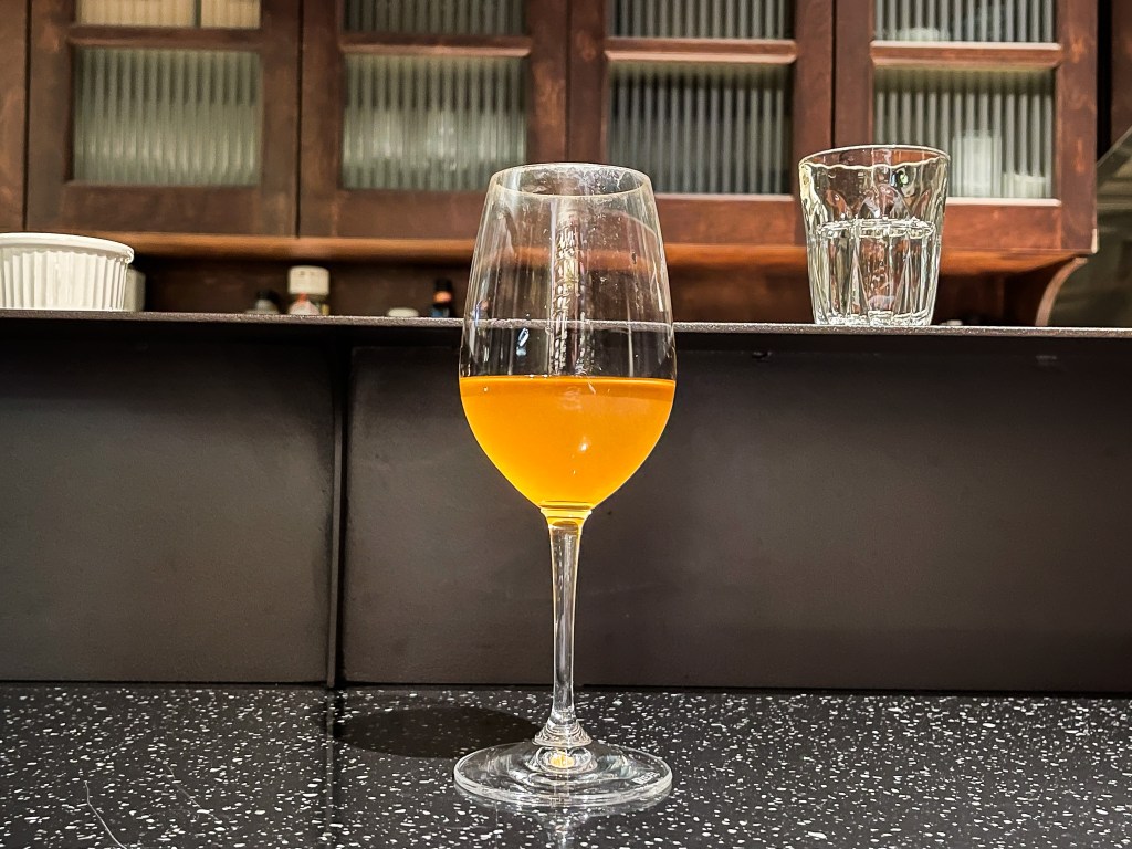 好的,剛剛喝了白酒,來到自然酒館莫名的就想要喝橘酒?Why? 我也不知道,也許橘酒的柑橘香氣與果汁滋味非常吸引我。