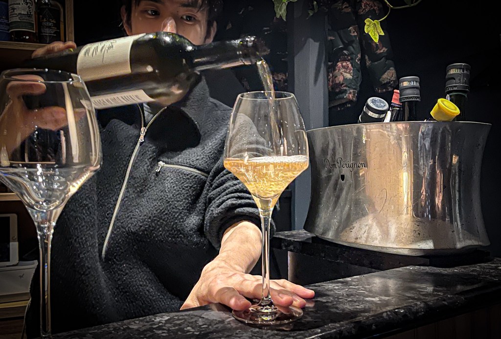 好的,店主俐落迅速完成開酒,並道上了葡萄酒後,並將酒放置於前方的冰桶內,也準備了一些下酒小點心,十分周到,而且也會隨時注意酒背著狀況來斟酒。