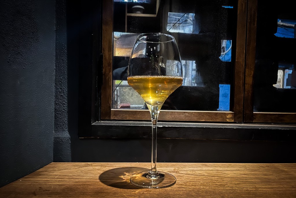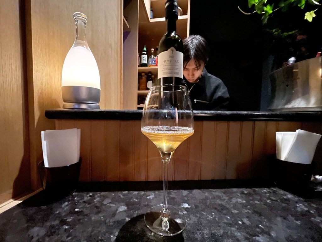 好的我先來觀察色調,由於店內不算是明亮場地,因此觀察上會稍有落差。這款甲州葡萄酒表現出深層的色澤,用琥珀色形容猶佳。