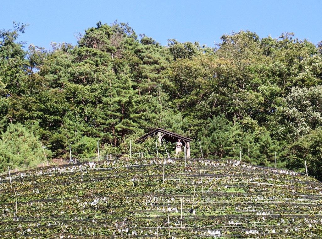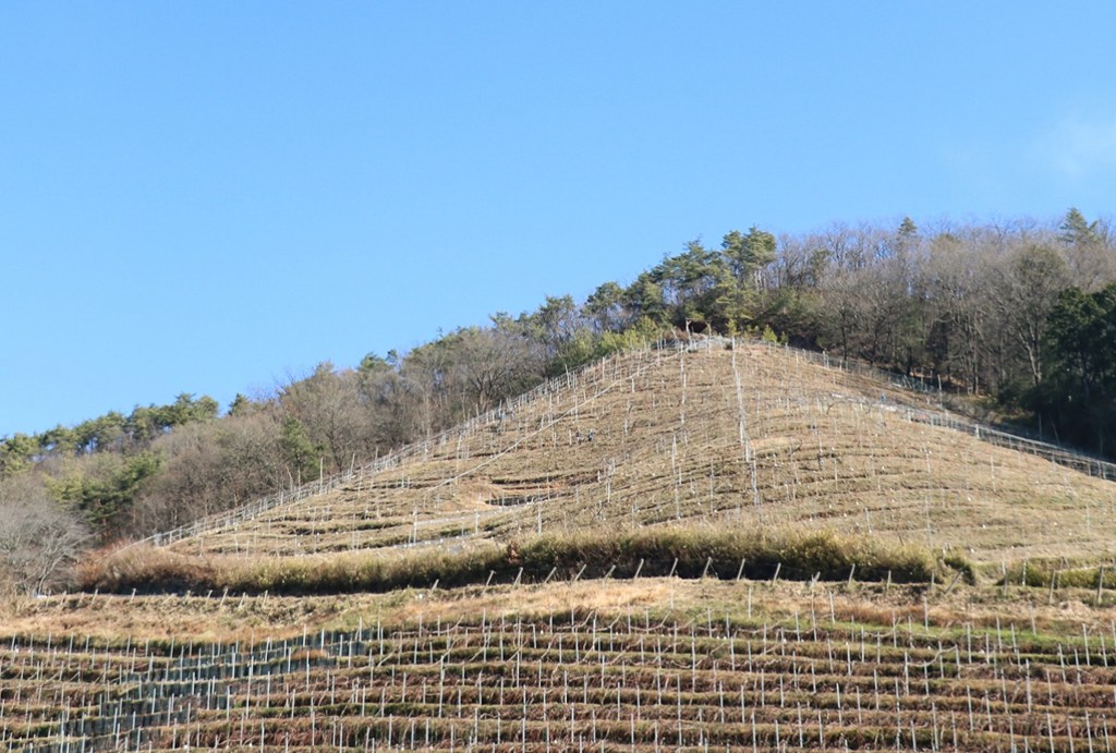 Coco Farm所在的葡萄園平均坡度為38度,最上方為42度的陡坡,他們為何要在深山如此陡峭的山坡上種植葡萄園呢?其原因很單純,因為無法得到平地,因此只能在深山開墾陡坡。但事實上,這個葡萄園的風土位置相當好,坐北朝南,因此陽光充足,而且坡度陡排水良好,非常適合種植葡萄。再探地質,有侏羅紀的地質構造,葡萄園也適於松樹自然生長對於葡萄的品質相當重要。