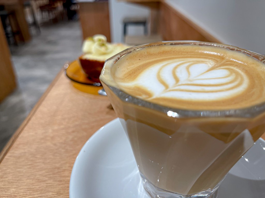聽到咖啡機簌簌作響,不久店主就將這杯熱騰騰的熱拿鐵端上桌了。