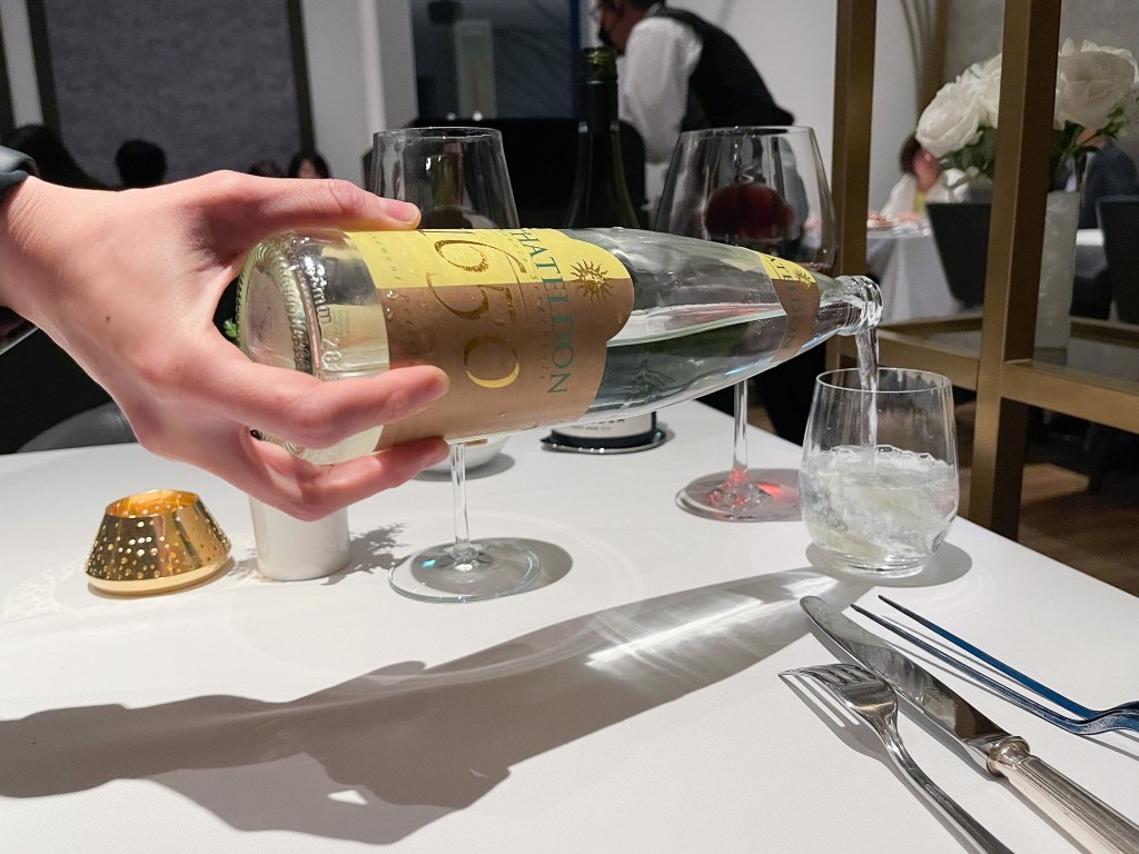 好的,服務人員送上料菜單不久後便詢問我飲用水,而我選擇了一支酒味品飲的一款法國CHATELDS1650 Sparkling。