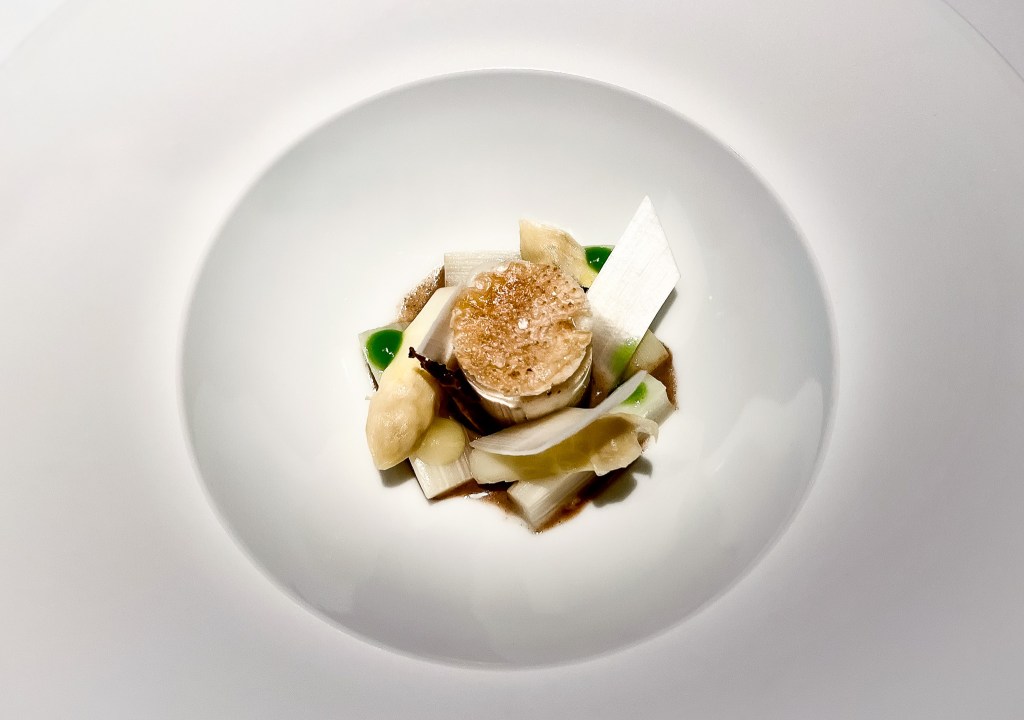 我用小湯匙挖起蒸蛋入口,這真的實在太妙了,太好吃了,上層還有用米做成的舒芙蕾因此有米香感,但最邪惡的是鴨肝蒸蛋,太滑順嫩柔的滋味,這太美味了,尤其是鴨肝的滋味,整道菜的調味也十分精準可口。