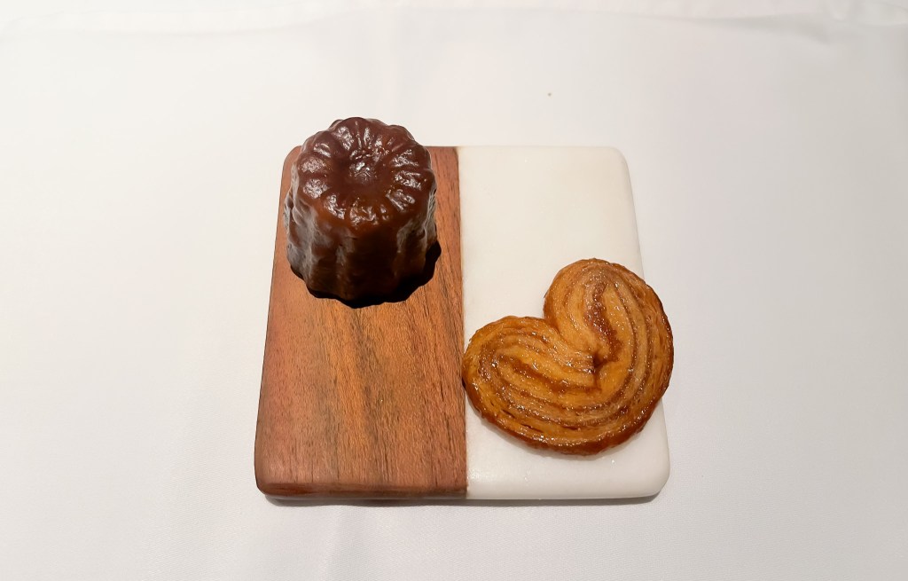 可麗露,香啊,可口好吃,就是可麗露應該的表現。而另一塊事焦糖餅,想以前常見的喜餅中常有的餅乾造型,這塊酥香甜美,尤其餅塊酥脆,焦甜好吃。今天一切都完美。