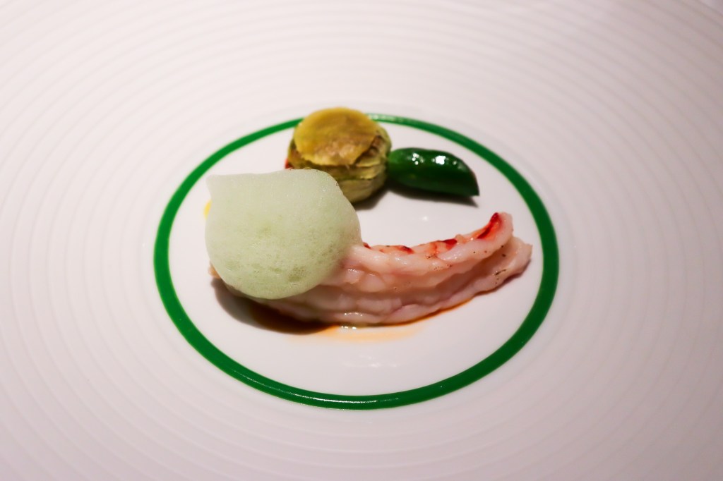 這道前菜是一道明蝦,這道料理十分清香舒服而美味,溫熱但不是熟食的明顯鮮甜可口,這折服我的味蕾。