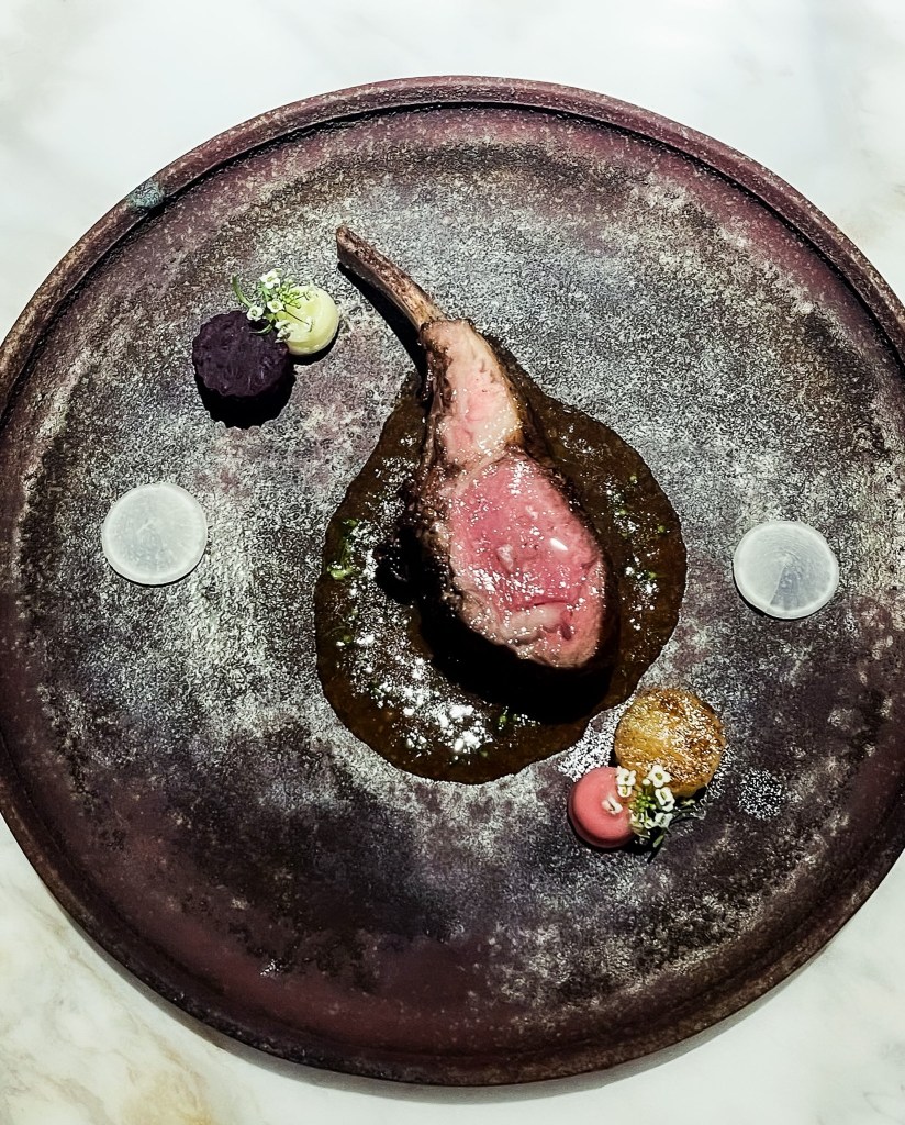 第七道是今天的主菜是春天的羔羊「烤羊排、羊肉汁」(Carré d’agneau, Sauce Jus d’agneau)。