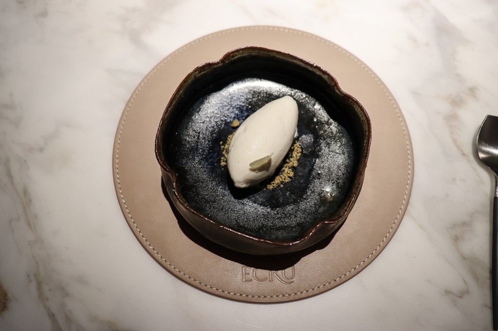 接下是甜點時刻,第一道甜點叫做「茉莉綠茶」(Jasmine Tea Ice Cream)。