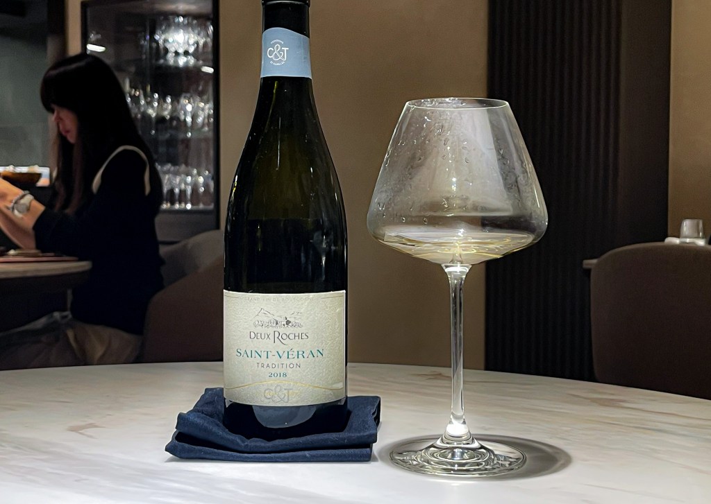我瀏覽了一下Pad上的酒單,然後選擇一支白葡萄酒,一支法國布根地村莊的Chardonnay,而標註所謂「傳統法」的白葡萄酒Domaine Deux Roches Saint Véran Tradition Bourgogne 2018(產地:France 產區:Burgundy, Davayé 葡萄品種:100%Chardonnay)#第671號。那麼在品味的同時也來看酒莊歷史。