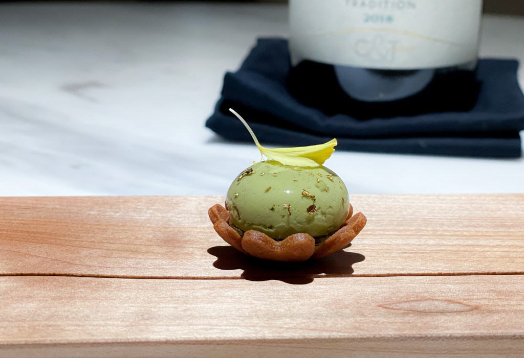 第二款是「茉莉花茶塔」。它帶出微微的茶香,又有嫩彈可破的甜點酥脆餅殼,取起吃下,嗯嗯..好吃,是完美的結尾小點。