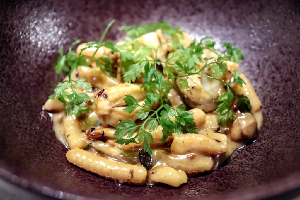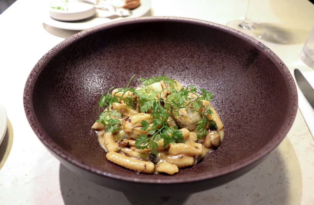 這道是義大利麵,因為淡菜牛骨髓等的素材也讓這道料理增添鹹香,濃稠鮮美,表現整個濃濃的風味,當然對於我這種喜好濃郁為的人來說,自然是好吃美味。