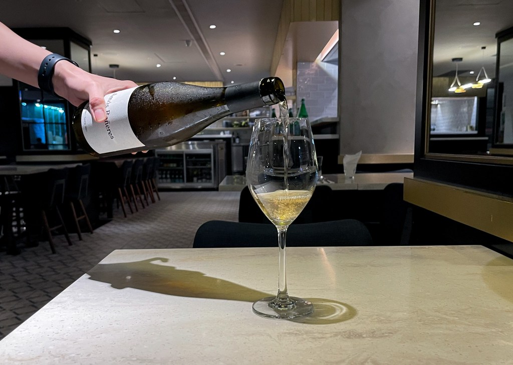 我飲下,嗯嗯…可以先說算是一款曠野的但很清楚的自然酒,飲下的第一滋味,有毛皮味、酸啤感,是一種自然酒的乾爽度,同時也酸澀、優雅,但很直率表現風土,如陽光、乾燥、岩石感。