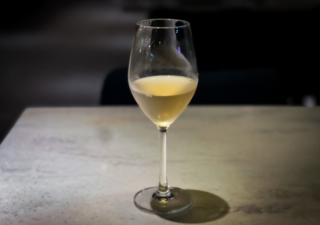 對了,它不愧是自然酒,不愧為橘酒,隨後有著礦物風味、也有毛皮味、有橘子肉塊味,也有種酸啤酒味道,相當乾爽而自然。