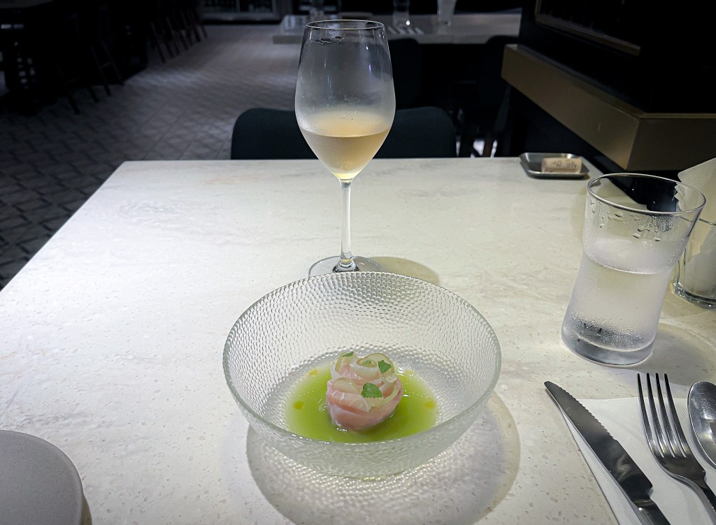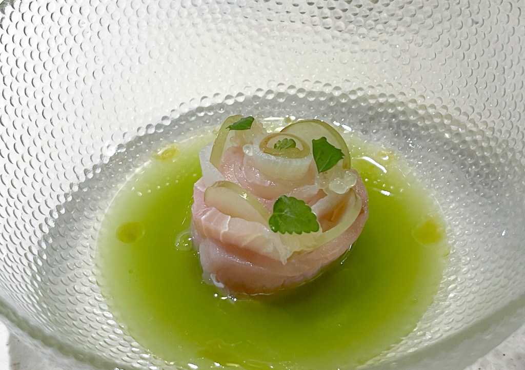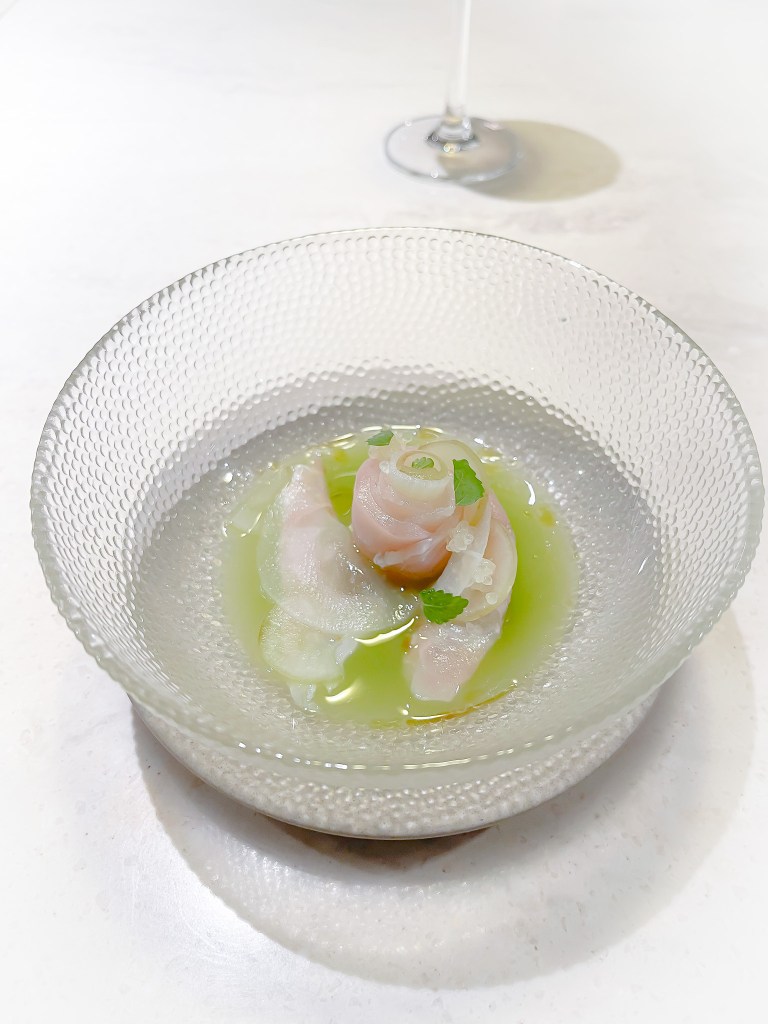 搭配之後,我想是這款魚?或許是魚肉?或許是醬汁?又或許是花枝?為何有一種玫瑰香氣。