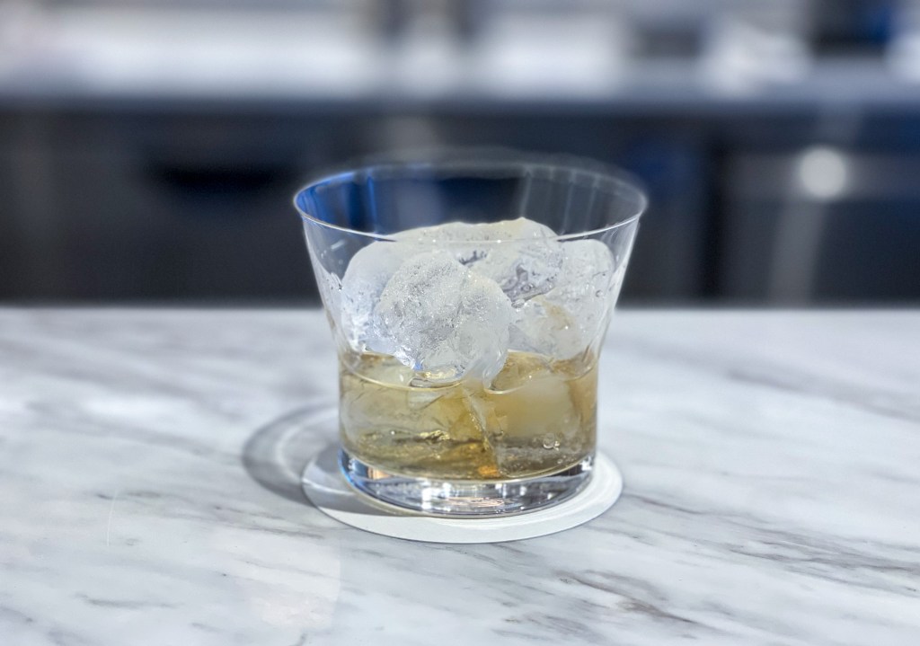 添加冰塊在一個款杯口的透明威士忌杯裡,同時也添加了冰塊。先是深色金黃,隨著冰塊緩慢溶解才緩緩成為金黃,黃金糖色澤的余市威士忌,雖然我家也有,但因為價格飛漲,讓我捨不得喝。