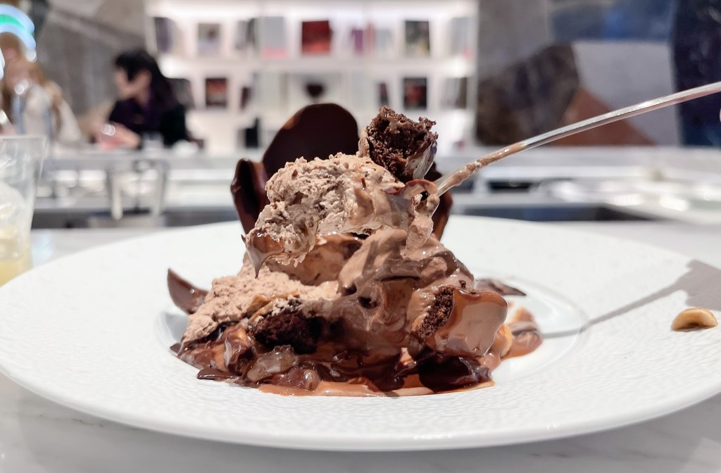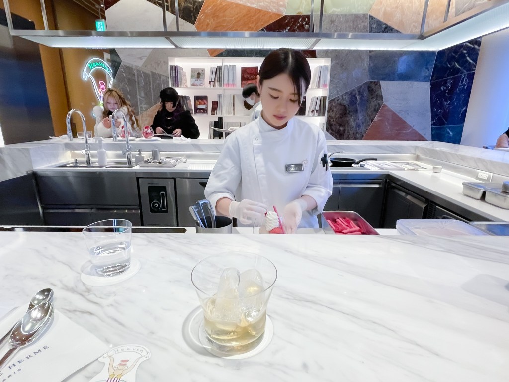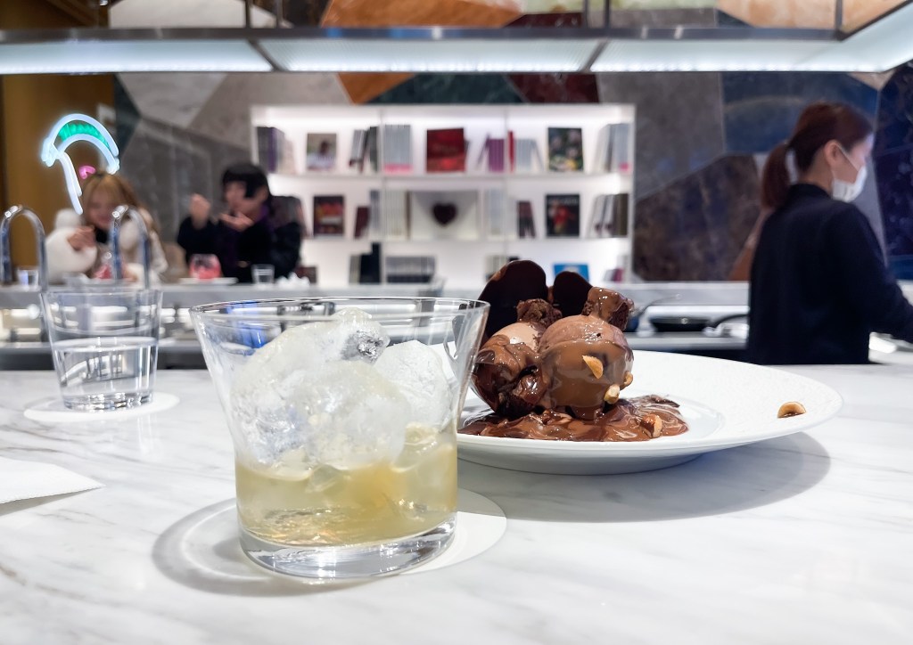 我在前往今晚訂位的餐廳用餐前,先到附近的PIERRE HERMÉ吃個現場製作的甜品,這回再次品味兩道,同時搭配一款細膩的余市威士忌,在用晚餐之前已經開心到不行了。