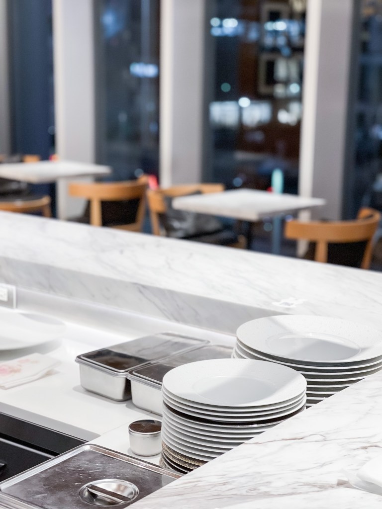 好的,太巧了,我又是坐在7年前晚上所做的位置上。儘管景物依舊,但是製作甜點的甜點師們也都越來越年輕了,而且可愛到容易讓不相干的網友敲碗!!這實在太放肆了這些人!!言歸正傳,就在等待晚間餐廳還有一個小時的時間下,在這裡同樣可以先品味截然不同,也足以能說是一種主題餐廳的盤飾甜點。
