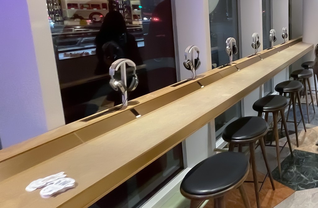不過這段對我來說又是殘念,因為晚上會喝葡萄酒,在此就不那麼方便,因此作罷。我覺得有趣的是,靠窗座位都有耳罩式音響區,這些是委請日本北海道搖滾樂歌手山口一郎領導的NF負責製作。