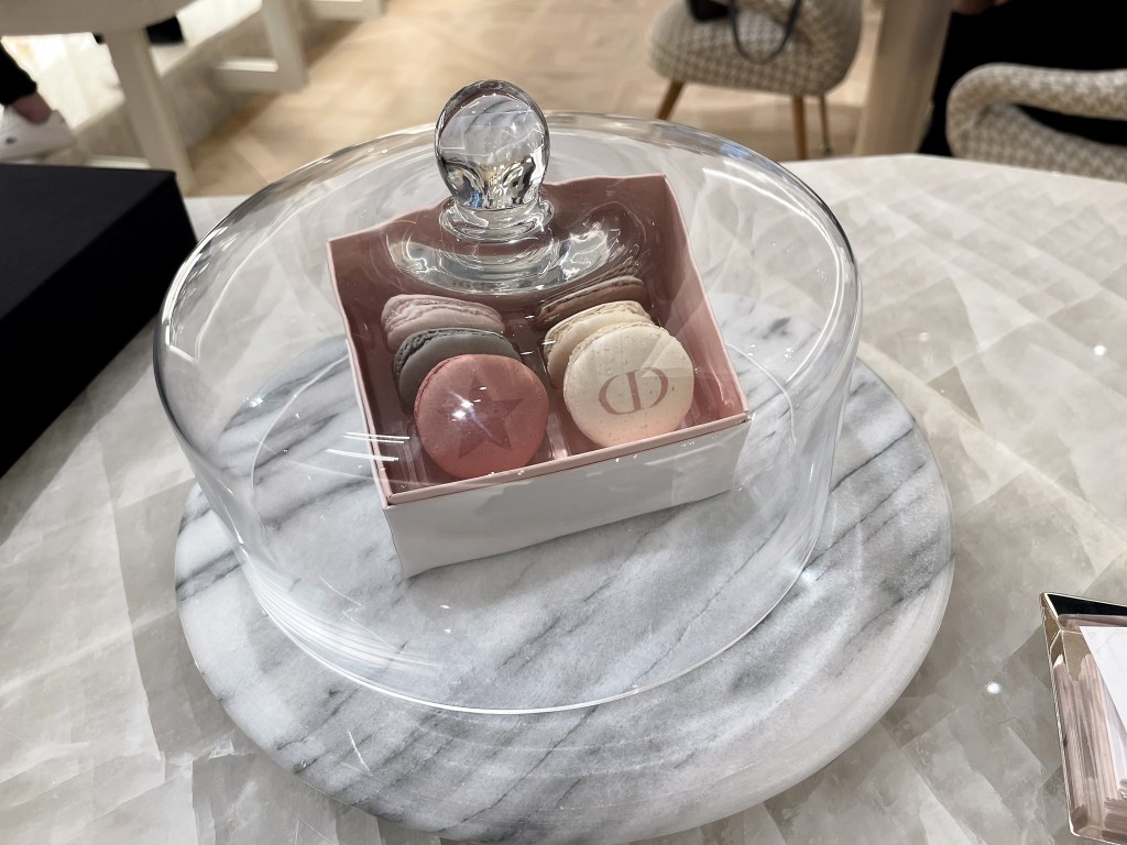 在等待服務人員的此時,我觀察環境,是十分繽紛的,也以Dior常有的設計,是格紋的、夢幻的且顏色繽紛用色定位清楚的的風格(這是我個人意見)。