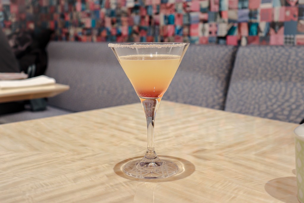 一杯馬丁尼杯,杯口沾上了糖,而雞尾酒是以Hendrick’s的琴酒還有玫瑰糖漿。Dior Montaigne?這怎麼看都是指包包系列的商品之一,至於是什麼,那麼就不求甚解,包留一點神秘空間吧。