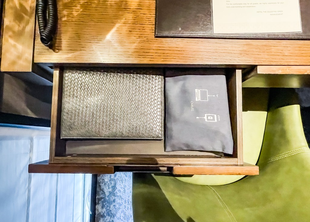 一如高級飯店一樣,擁有完整的飯店用品,除了基本的電視、冰箱外,還有提供電熱水壺、濃縮膠囊咖啡機、開瓶器、葡萄酒杯、咖啡碟、鏡子、多充電器與轉換插頭,還有手點桶聖經這些必須的傳統物品。