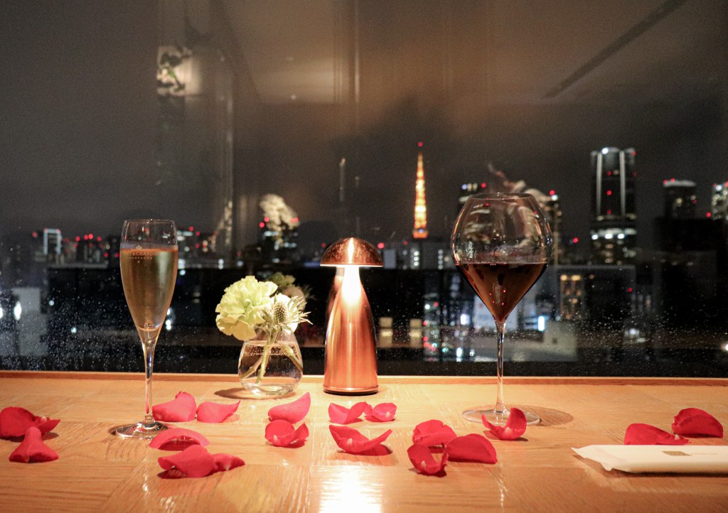 其實除了窗景可遠眺東京鐵塔外,已經相當不錯了,酒吧的服務人員也相當貼心可愛,還加上一點情境,撒了些玫瑰花瓣。