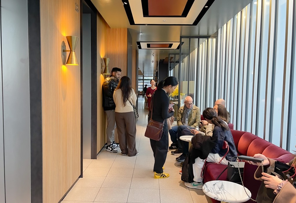 進入這棟新式大樓,一樓便有服務人員做管制迎接,餐廳位在12樓,由於訂位時間在8:30時,也是餐廳的營業時間,在等候營業時可以在外頭相當符合銀座優雅的休息區等待,也可以眺望一下東京的風景,心情已然大好。