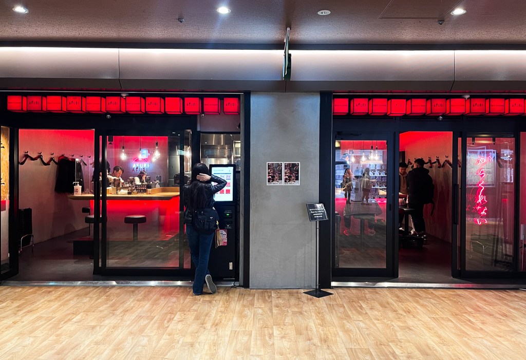 不過也還好,我的方向感是不錯的,也很順利的很快的來到這間以辣度為主的AFURI辛紅店。門市以黑與紅亮色為主軸,營造出一種神秘的、恐懼的、具攻擊性的神秘感呈現。