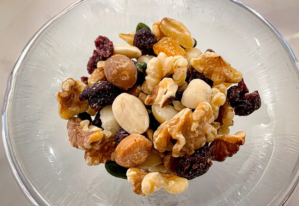 對的,總覺得嘴巴饞,還是點了一盤綜合堅果來搭配白酒。這盤中又核桃、夏威夷果仁、堅果、蔓越莓感、杏桃果感、還有其他榖果。隨意吃,除了本身有營養價值,邊喝白酒的同時也有一種爽感的存在。