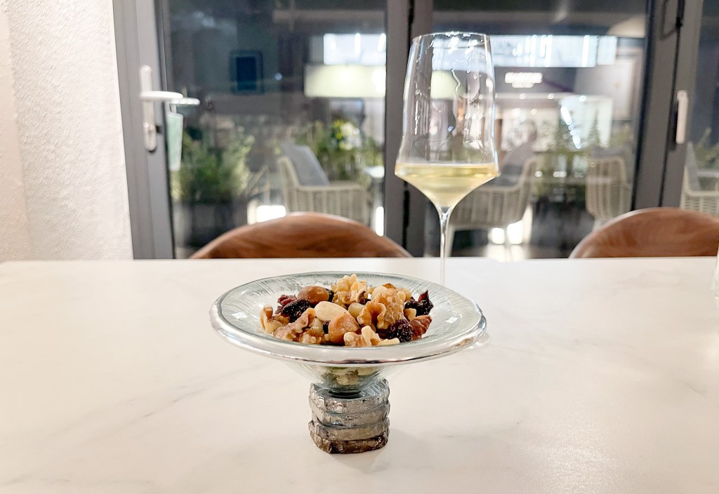 對了,在邊喝葡萄酒時也可以點一款搭配葡萄酒的酒窖小食「綜合堅果」搭配品味。