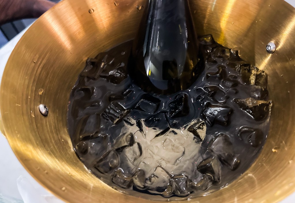 當完成開瓶後,持續冰鎮,讓葡萄酒在夜晚發揮它美好的價值。那麼,現在開始來觀察這款葡萄酒,與品味它吧。