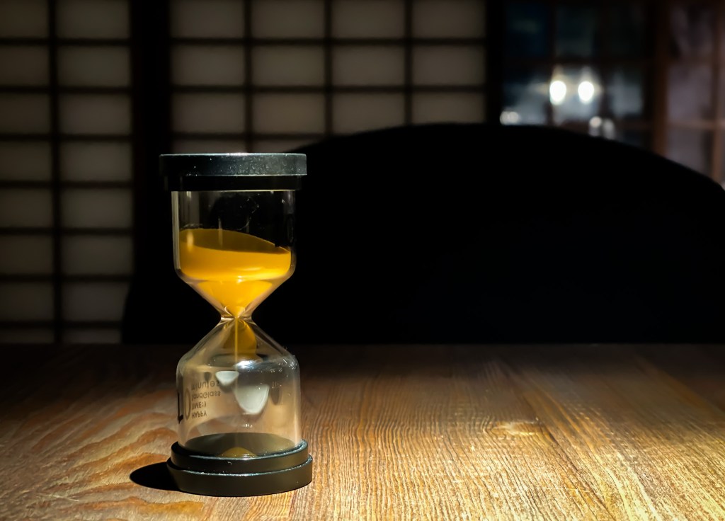 然後蓋上蓋子後,放置在一旁的案上,兵將沙漏倒置(請等待10分鐘)。