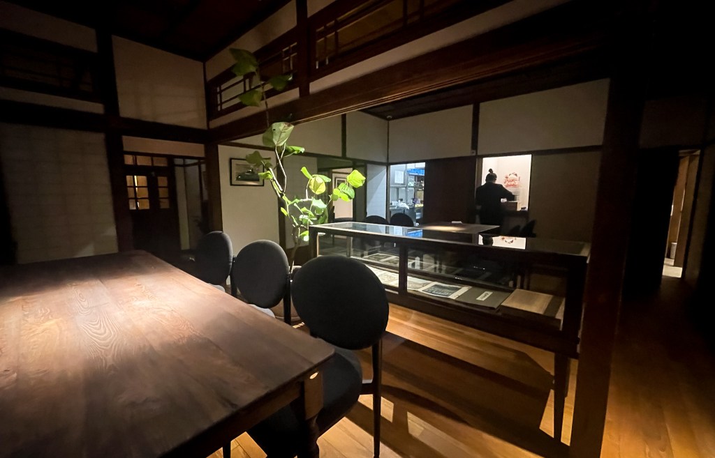 餐廳的位置頗多,除了幾處雙人對座的餐桌外,在主廚的吧台前方也有一張圓桌位置,此外,也有大桌與特別的圓桌包廂,無論燈光造景都十分讓欣賞,尤其許多浮世繪風格掛圖,還原和洋房的原汁原味。