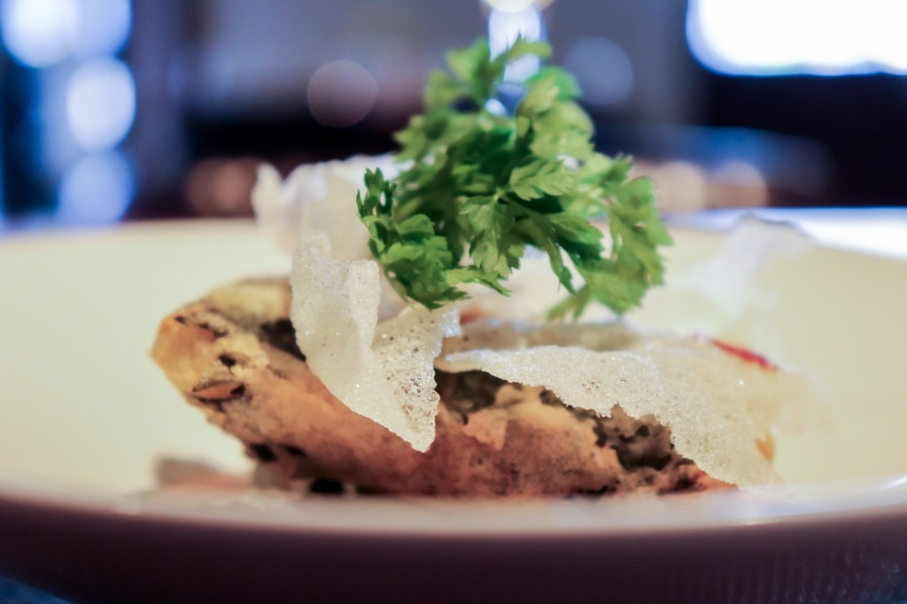 當我直接送入口中吃下,咀嚼後有一種市記憶裡的場味,很鮮香,尤其魚肉搭配葡萄帶出一種清爽感,此外餅殼脆口病搭派如炸過小脆片,整體來說是一道不錯的小驚喜。