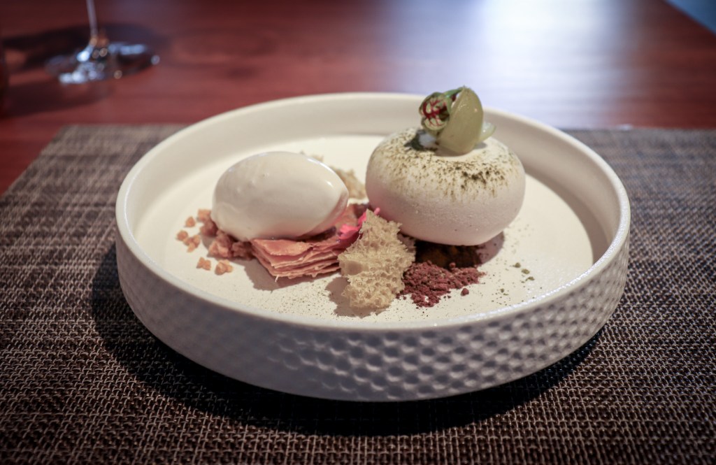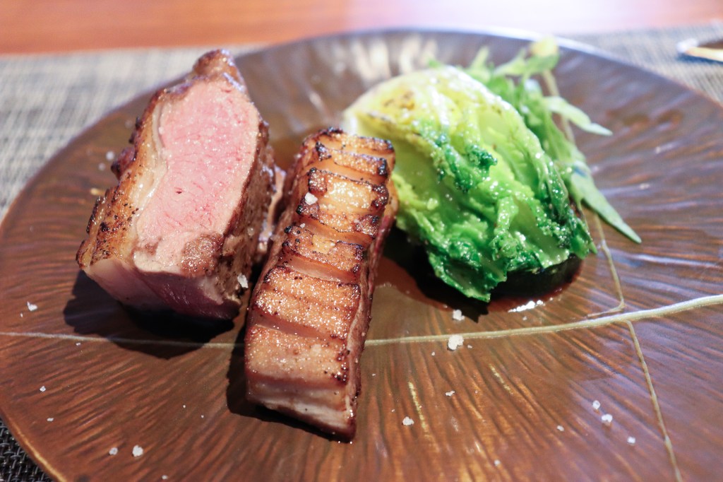 好的,接下來是霸氣的第六道菜為主菜「Lumina和羊鞍肉」(Lumina lamb saddle)。