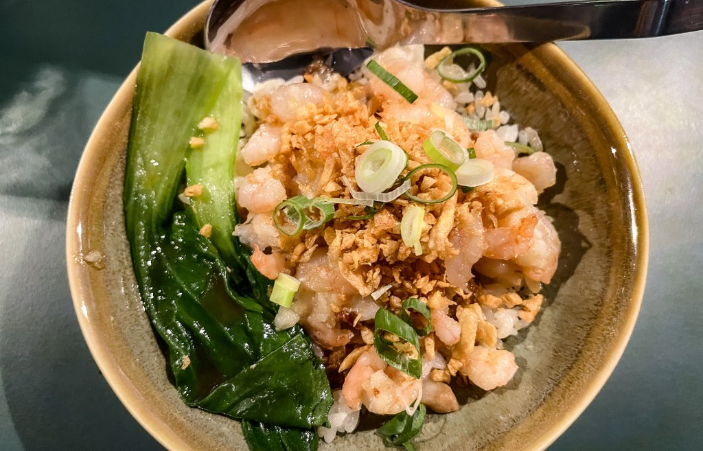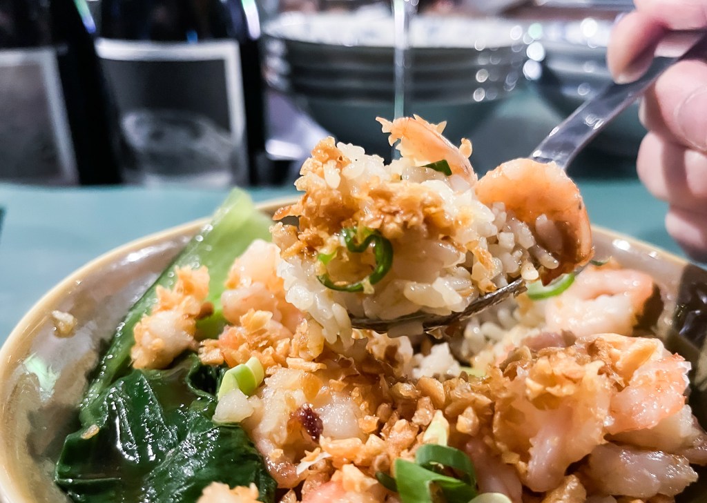 那不重要,點了他,試試比較精準。比起臺南的蝦仁飯,這道相對精緻一點。蝦仁味鮮明,不過有些配料在受到吵雜環境的影響,吃不太出來是蒜酥還是油蔥酥,還是蝦皮。