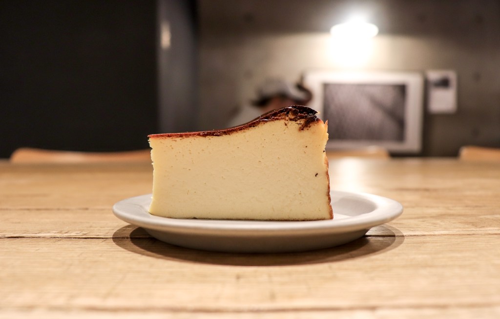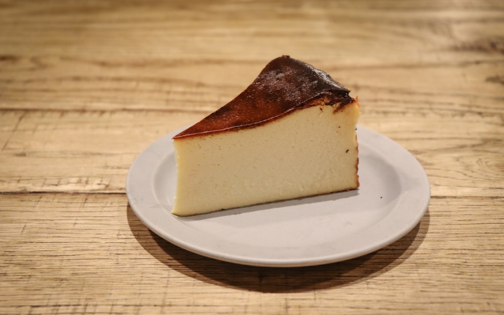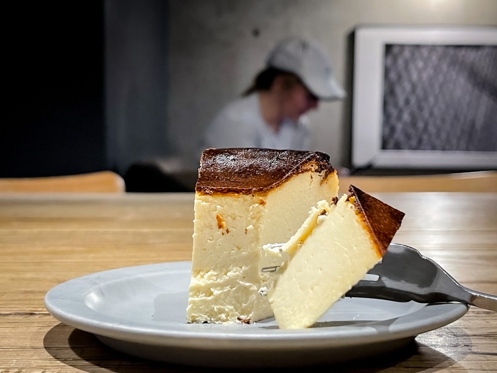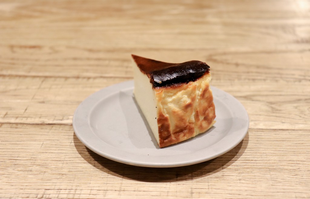 這塊蛋糕外皮焦黑焦厚,乳酪淡雅豐厚滋味,蛋糕體相當乾淨呈現優雅的黃調,尤其側邊乳酪蛋糕烤的漂亮不過頭,也沒有乾漬感。