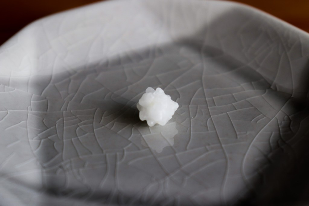“くすりおろした「水尾柚子」の皮と果肉をふんだんに用いることで、爽やかさと柚子の高い香りと苦味が奥深く、趣のある金平糖です。”