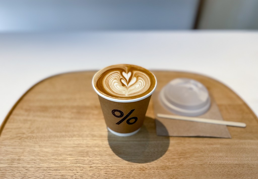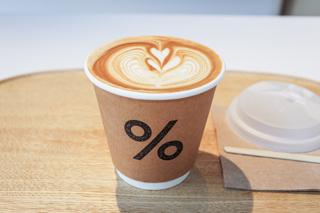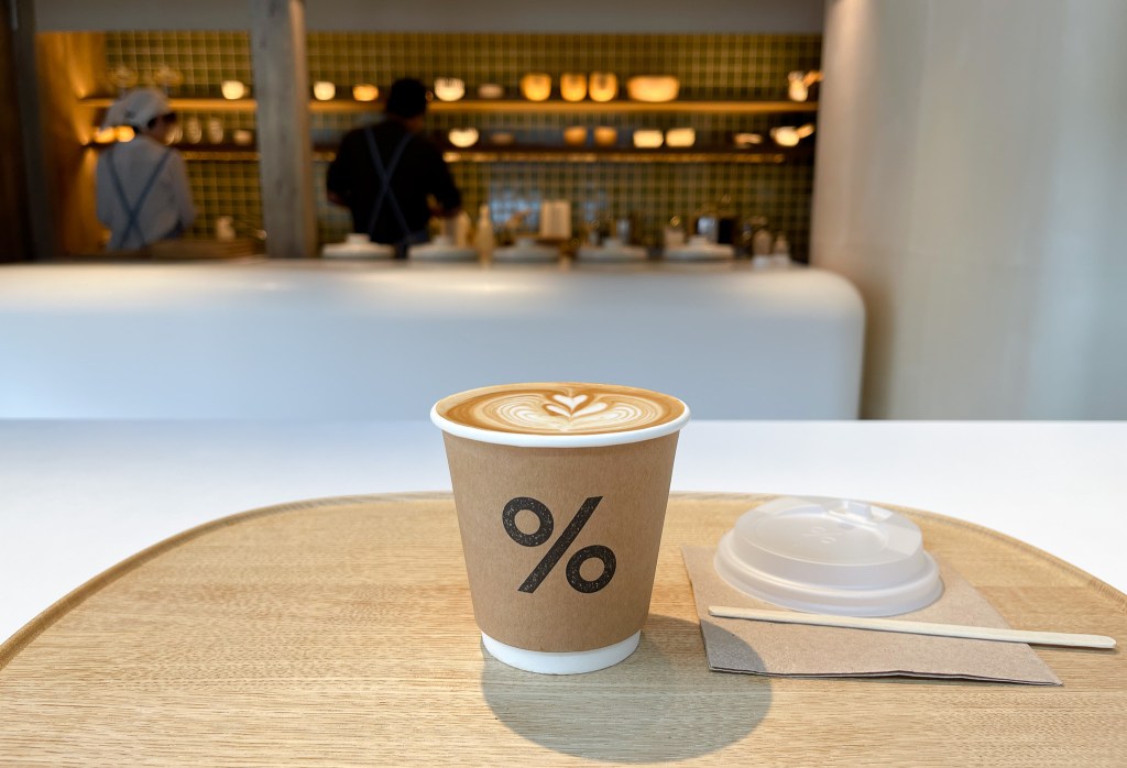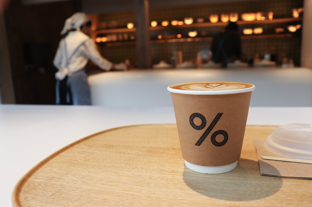 不過,再重新搜尋資料的時候,我也才了解,原來以白色為襯底的「%」logo,事實它是不用發音的也不念percent,它是象徵一根樹枝上有兩顆咖啡豆的意義。