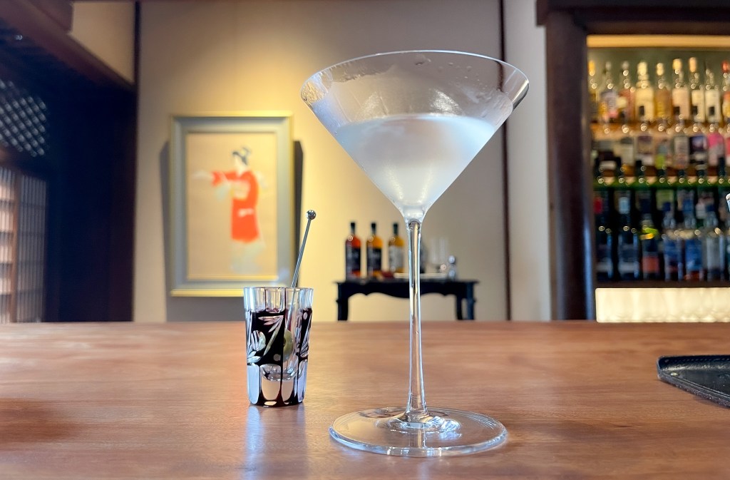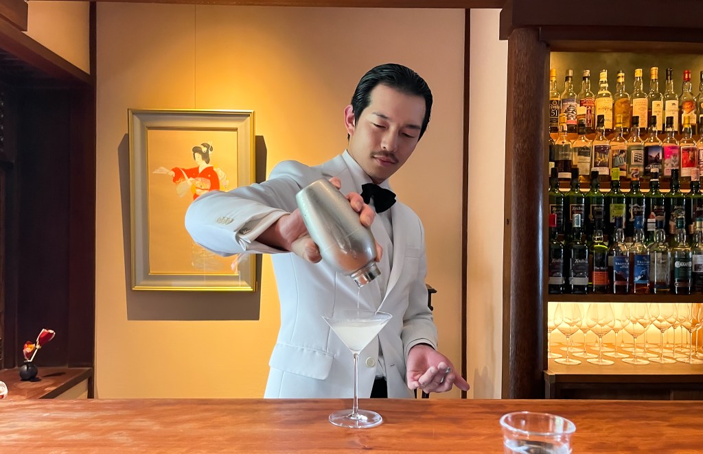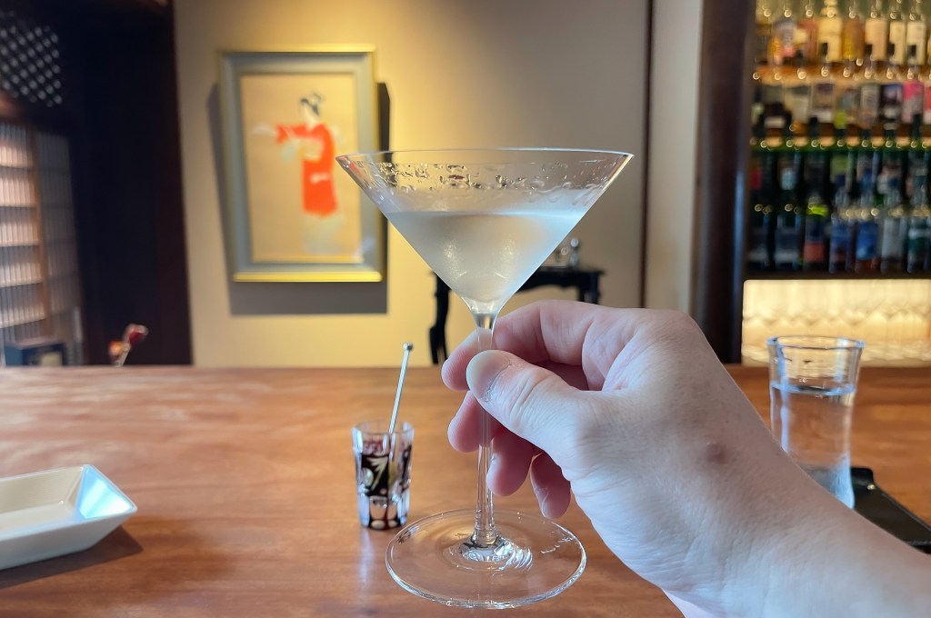 調酒師用Roku以及日本HAKU伏特加以及香艾酒作為基底,雖然不是原汁原味的Vesper但是經過調酒師的,俐落動作以及優雅的調製下,先攪拌而後搖盪,最後將酒注入在馬丁尼杯中。
