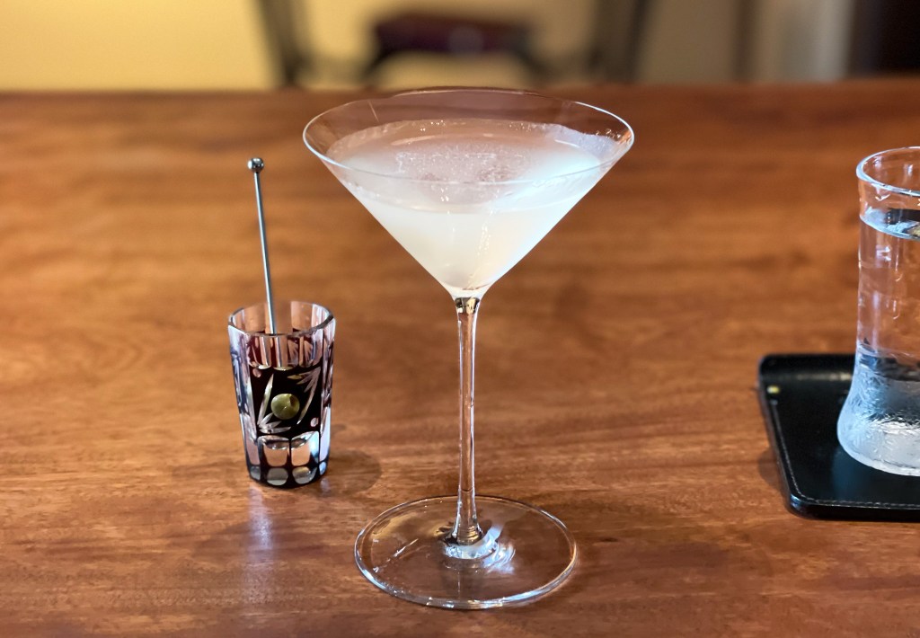而後味在酒液化開的酒精作用下,使得我的味覺中感受到乾澀鹹味,因此也開始有些與微醺感。此時我吃下配上的鹹橄欖,橄欖總是咸澀刺激,因此吞下一口Vesper確實前味感裂而後味順口,當然免不了烈酒的刺激。