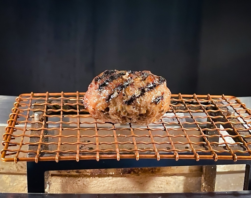 因為,這裡的漢堡排確實就是純牛肉,感受不出來絲毫半分的混合肉滋味或組合肉烤能有更多的腳肉碎粒感。因此,伴隨絞肉而挽的肉裡,拌佐的如洋蔥等小調味物也是微量,看得出來為了盡量減少干預牛肉滋味。直接火烤,調味醬也像是吃各種排類,衍伸出自有的醬料搭配。