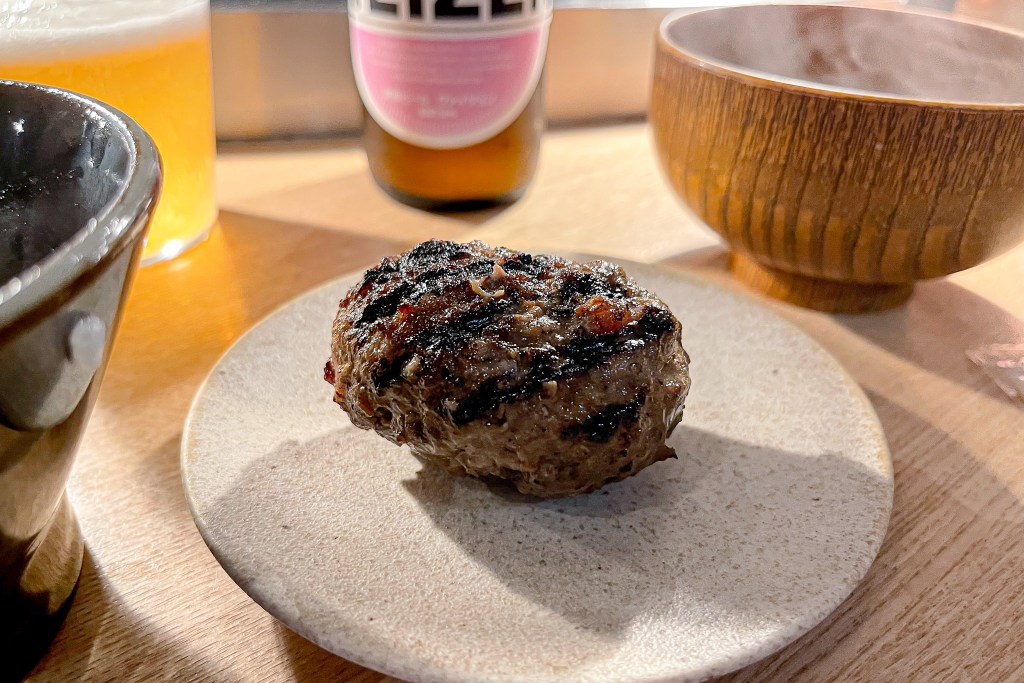 而第一顆送上時就會請你先品嚐原味,於是我就直接夾起,然後吃它一口,咀嚼..嗯嗯..微微的焦脆後一陣肉汁火烤的焦香氣。