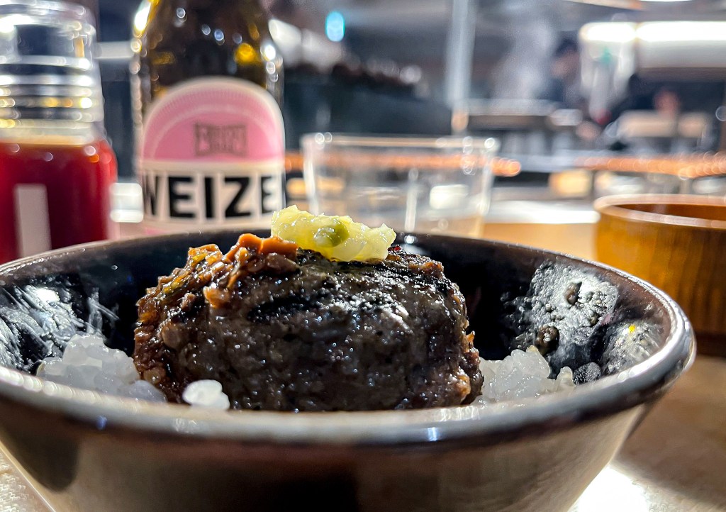 東轉西彎來到京都的挽肉と米後,我便急急忙忙地進入了候位的小型隧道。不過在候位的過程,仍見許多人是沒有訂位以為可以排隊的,事實上,京都店是預約店型,所以得先上TableCheck訂位預繳1000 Yen後確訂位才有位置的。好吧,就算是酒吧的座位費一樣,這樣我也覺得合理。