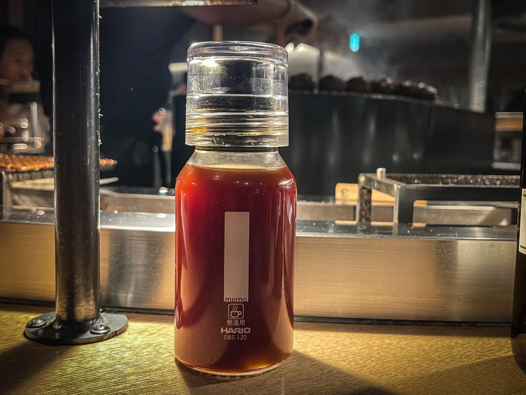 第三顆,那麼就來搭配醬料吃吧。此時已經續上第二碗,感覺已經飽了,不過有現烤的風味還有肉質感。