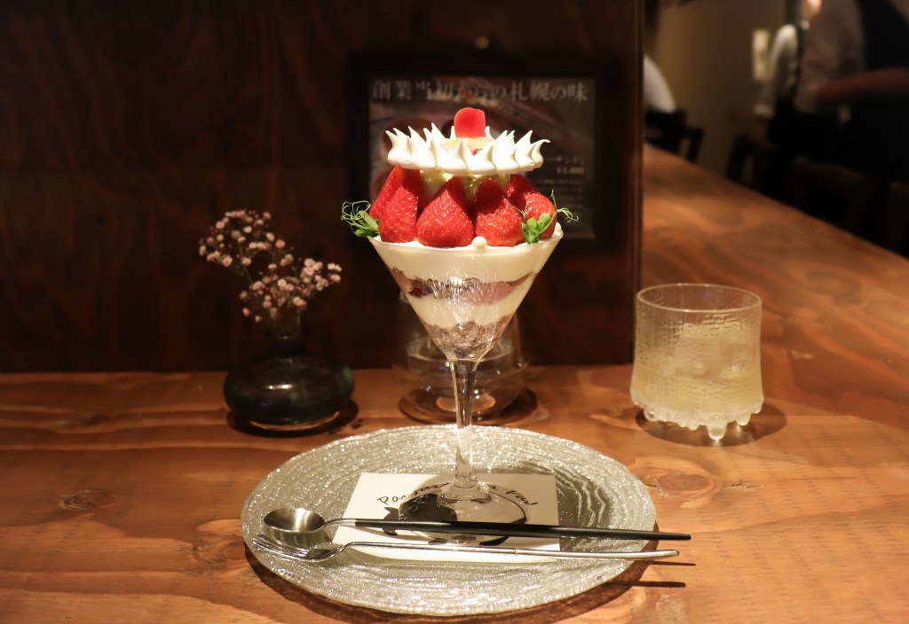 嗯嗯,離開了這次旅行最愛的酒吧後,正準備散步回到旅館,不過一下樓,我想到隔壁還有間深夜甜點,而且是PARFAIT。我回想了一會兒,上回在日本吃這樣甜點的時間還…還真的挺久的,而且是在東京。那麼在夜深的時候,竟然也有甜點可以吃,在離開日本前可別放過了。