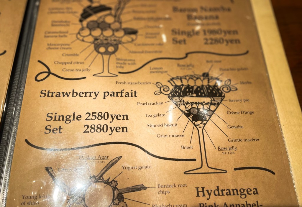 我看一下菜單,嗯嗯…看來我對於草莓有著非常強烈的渴望啊,怎麼突然那麼想吃草莓呢?好的,也不再猶豫了,直接選擇STRAWBERRY PARFAIT,那麼當然要搭配套餐啊,因此還可以點一杯YOICHI WHISKY。
