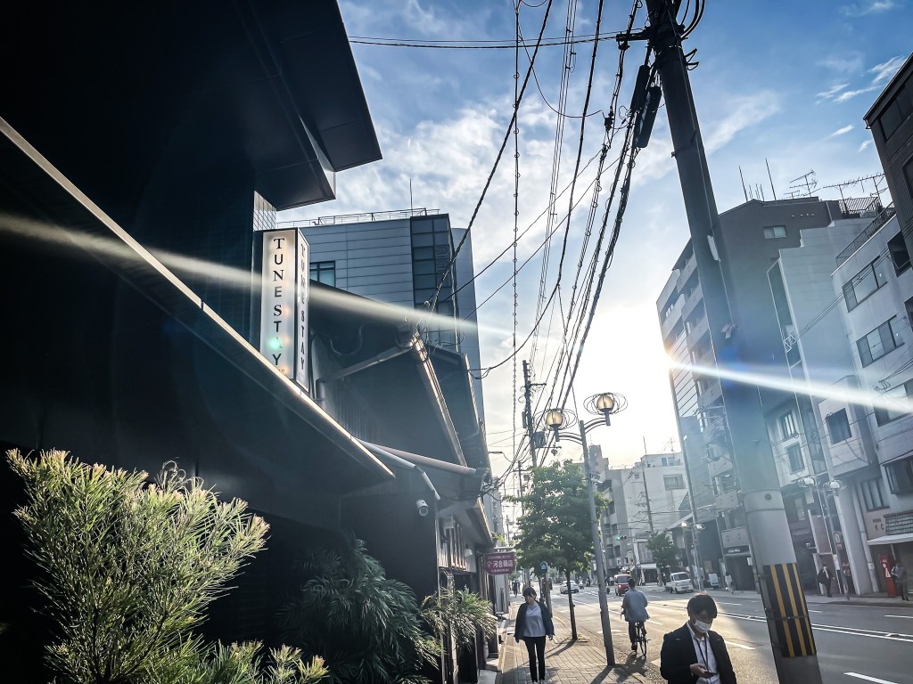 我轉向,是呀京都塔,真的很久不見了。儘管我中午喝了一支葡萄酒,但目前為止,精神依然神采。我定位了今天要住宿的旅館Tune Stay Kyoto,並沿著指示朝向旅館位置前行。