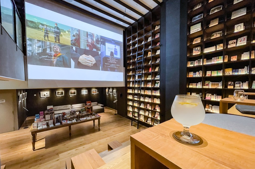 也可以坐在圖書平台上,欣賞一部短暫的為電影以及看一些北齋畫作的鬼怪漫畫,這氛圍還不錯。