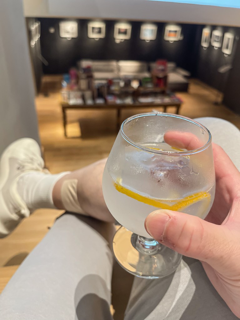 晚間在飯店裡,洗完澡下來,先後點了個兩杯「奈良琴酒Kikka Gin Tonic」以及「鳥取的琴酒LAST EPISODE O搭乾燥配迷迭香的Gin Tonic」喝。