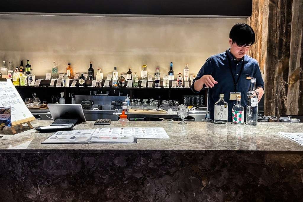 會選擇TUNE STAY KYOTO是有個因素的,因為這裡的櫃檯旁是酒吧吧檯,以琴酒為專賣。這GIN BAR就跟咖啡館一樣,可以挑選自己想喝的琴酒,倘若要喝 GIN TONIC則要先選擇Tonic Water以及最的Garnish調味。
